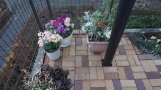 DIY作品集 ミニテラス 北側と東側のアプローチの接続部分。直角に曲がる部分で、レンガを横方向に敷いて伸ばしていけば良いと考えていましたが、実は敷地の形が微妙に曲がっていたり、邪魔な位置に受電用のポールが立っていたりして、単純にレンガを並べていくだけではうまくはめ込めません。どうしてもレンガを切断して丁度いい大きさにする必要があり、ここで覚悟を決めてグラインダーとレンガタガネを購入してレンガ切断に挑みます。 2017.04.30 トカP DIY作品集ガルテンのDIY