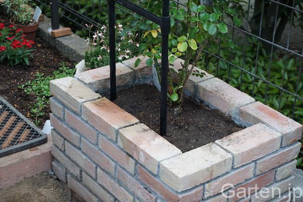 実は、我が家の土地は周りの緑道より少し高くなっていて、周りにぐるりとコンクリートの法面があります。従ってアプローチとフェンスの間の花壇の土の部分のおよそ半分ほどは、20cmも掘るとコンクリートの壁面が出てきてしまいますので、深く根を張る花や球根はなるべく植えないようにします。