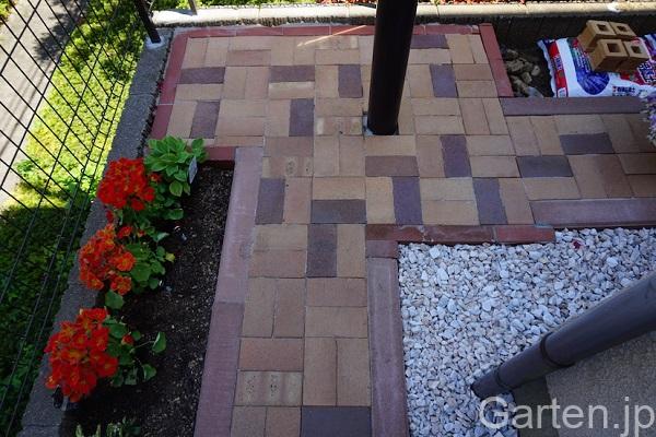 東側のアプローチもこんな感じで完成です。北側より少し長めで、その先の南側の庭まで続きます。