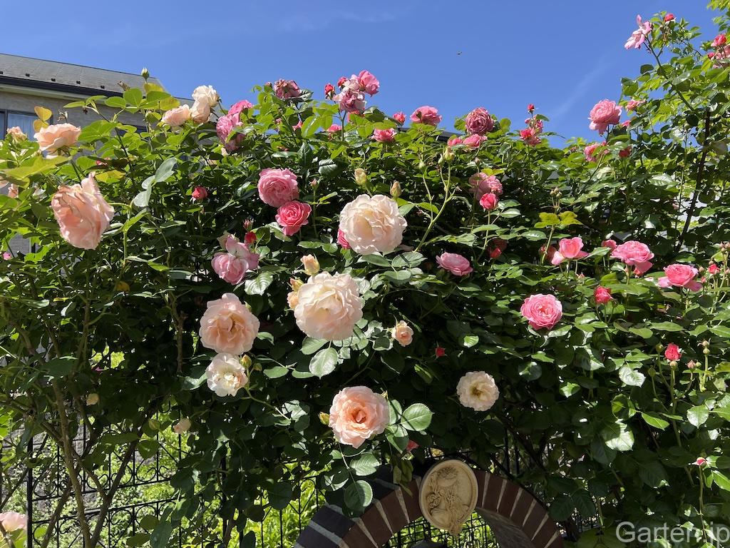 5月になると、待望のバラの花が満開となり壮観です。