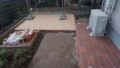 中途半端なレンガカットが発生しないように敷設領域の大きさを先に決め、それに合わせて縁取りのテラス花壇が事前に作成してあります。領域の大きさはレンガサイズのバラツキや歪みを考慮して1〜2mmの隙間を開けて敷設できるようにしました。