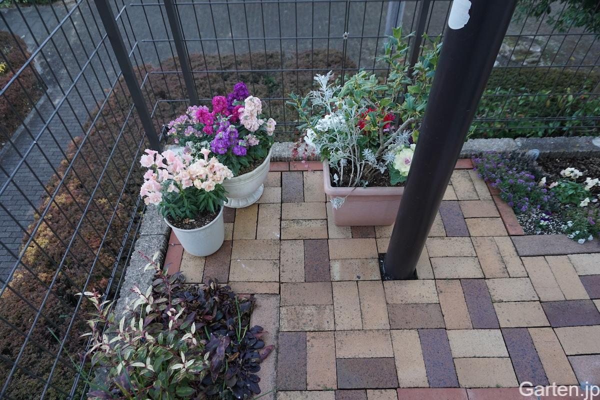目立つ角地は鉢物の置き場所としてミニテラスを作成