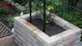 煙突型花壇の反対側の花壇は、もともと簡易な花壇ブロックで囲う予定でしたが、煙突型花壇の出来栄えがなかなか良かったので、こちらも同じようにレンガ積みのアーチベース花壇に変更することになりました。