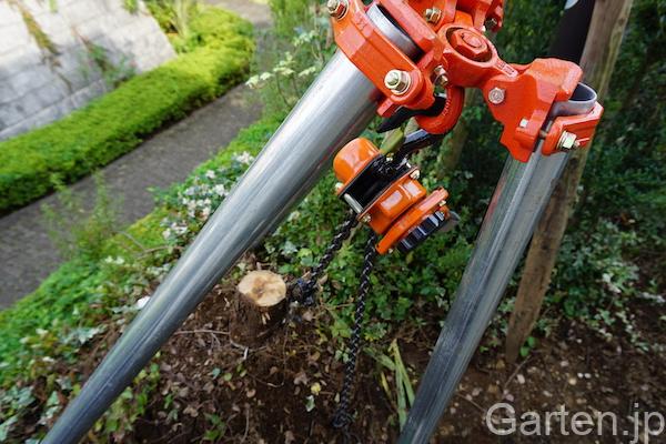 3つの扇型が段違いで重なったデザインで、中心に鉢植えを置く台と、作業場所として花弁の形の足場を配し、メインテラスの縁のテラス花壇に続く枡形花壇もつけました。